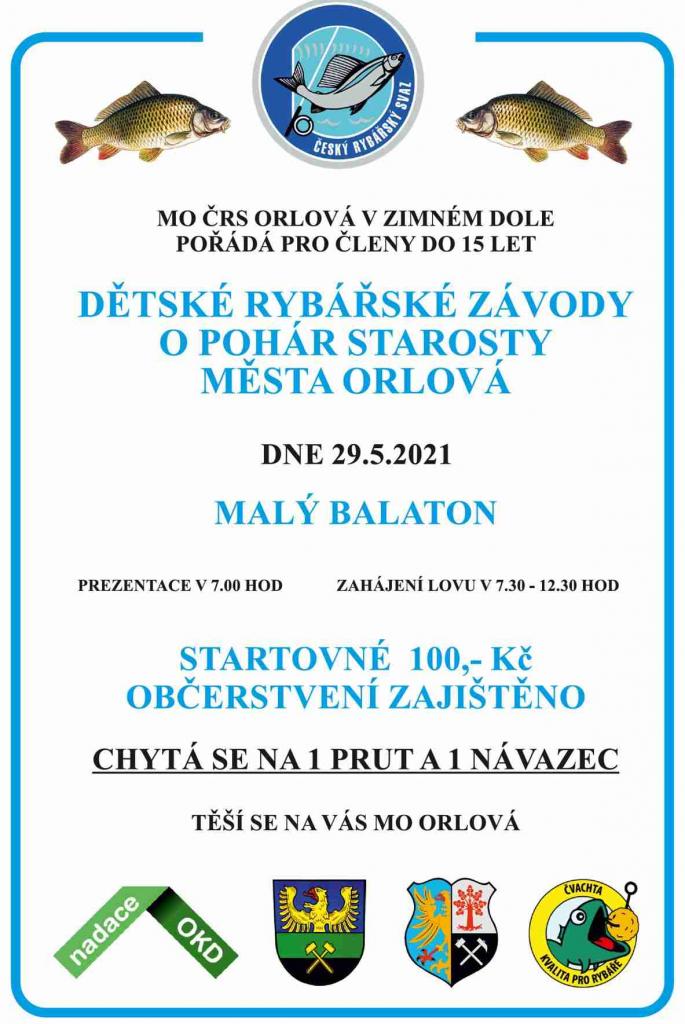 Místní organizace Českého rybářského svazu Orlová pořádá za spoluúčasti města Petřvald Dětské rybářské závody. Závody se uskuteční dne 29.5.2021 v lokalitě Malý Balaton od 7:00 hod.