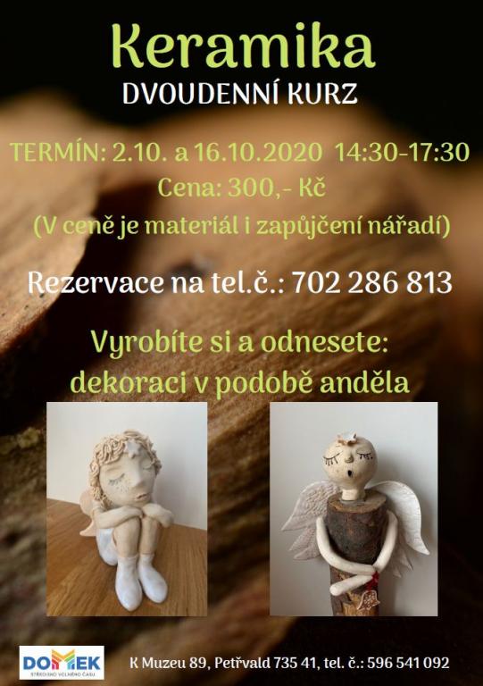 KERAMIKA - dvoudenní kurz, DOMEK, 2.10. a 16.10.2020, 14:30 - 17:30 hod.