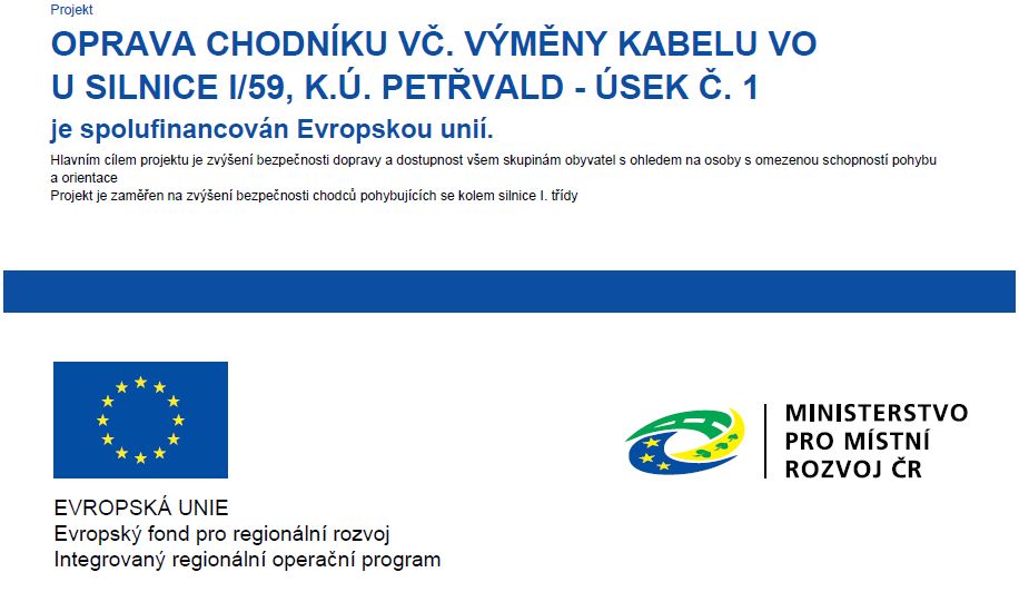 Projekt (2019) je zaměřen na zvýšení bezpečnosti chodců pohybujících se kolem silnice I. třídy
